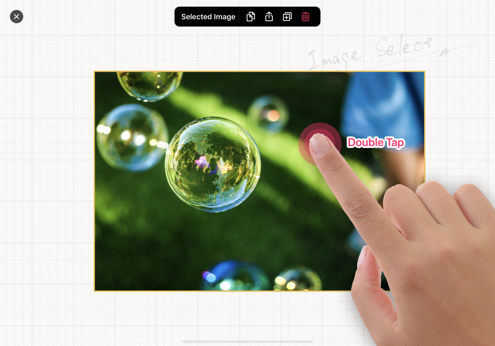 You can select the image quickly with (single finger) double-tap the image.